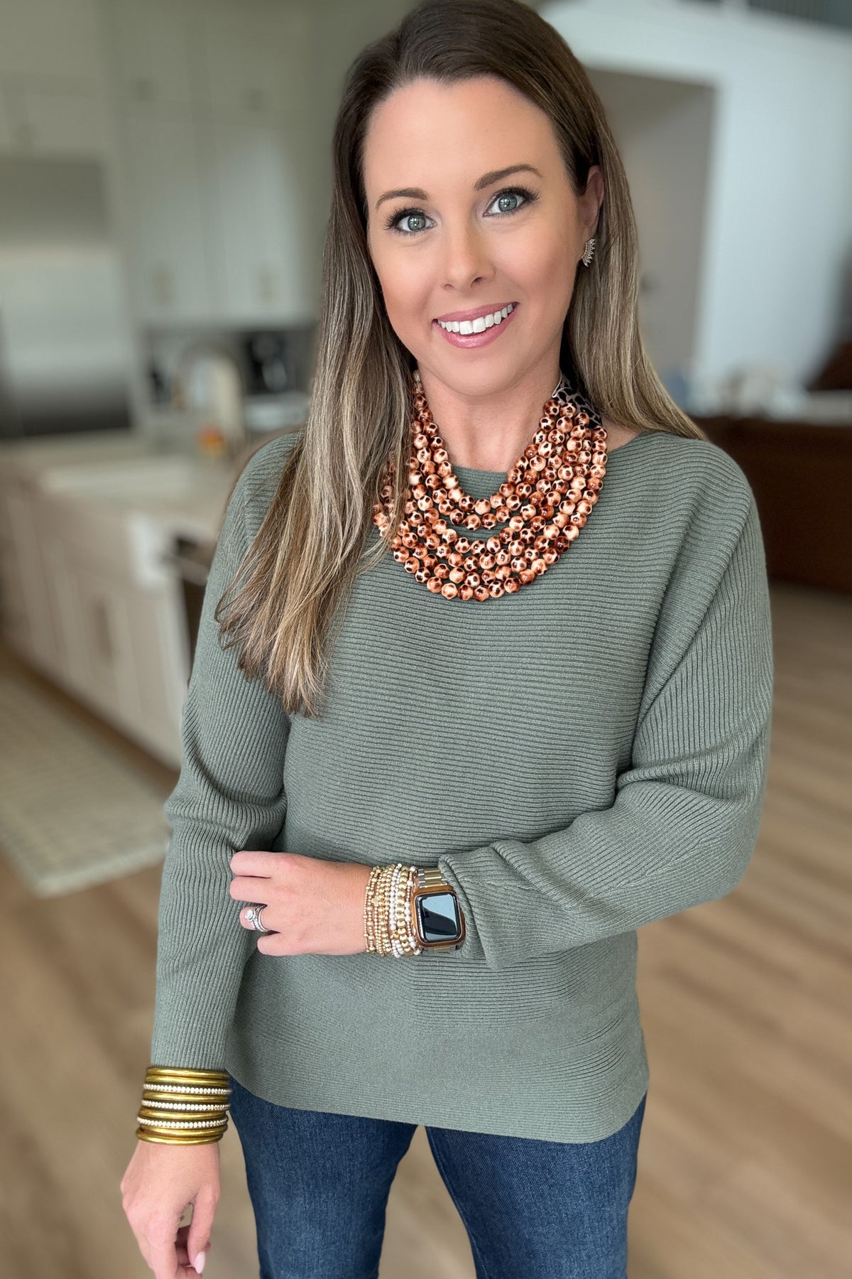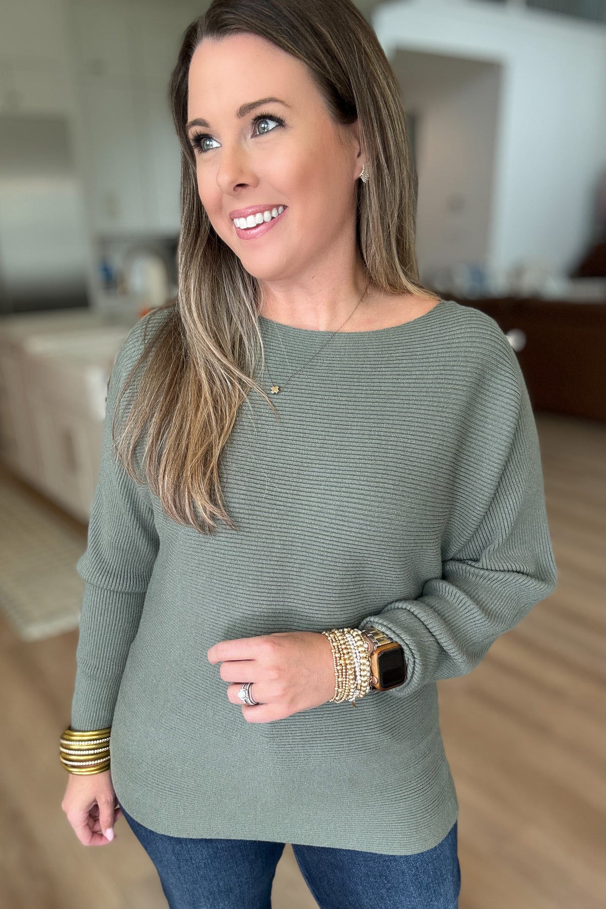 The Shelby Sweater in Spruce is your new go-to for effortless style. This cozy knit features a chic boat neck that frames your shoulders beautifully and ribbed material that hugs in all the right ways. Perfect for layering or wearing solo, it's the sweater that works as hard as you do—whether you're heading to brunch or settling in for a cozy night in. Timeless, comfortable, and undeniably cute.