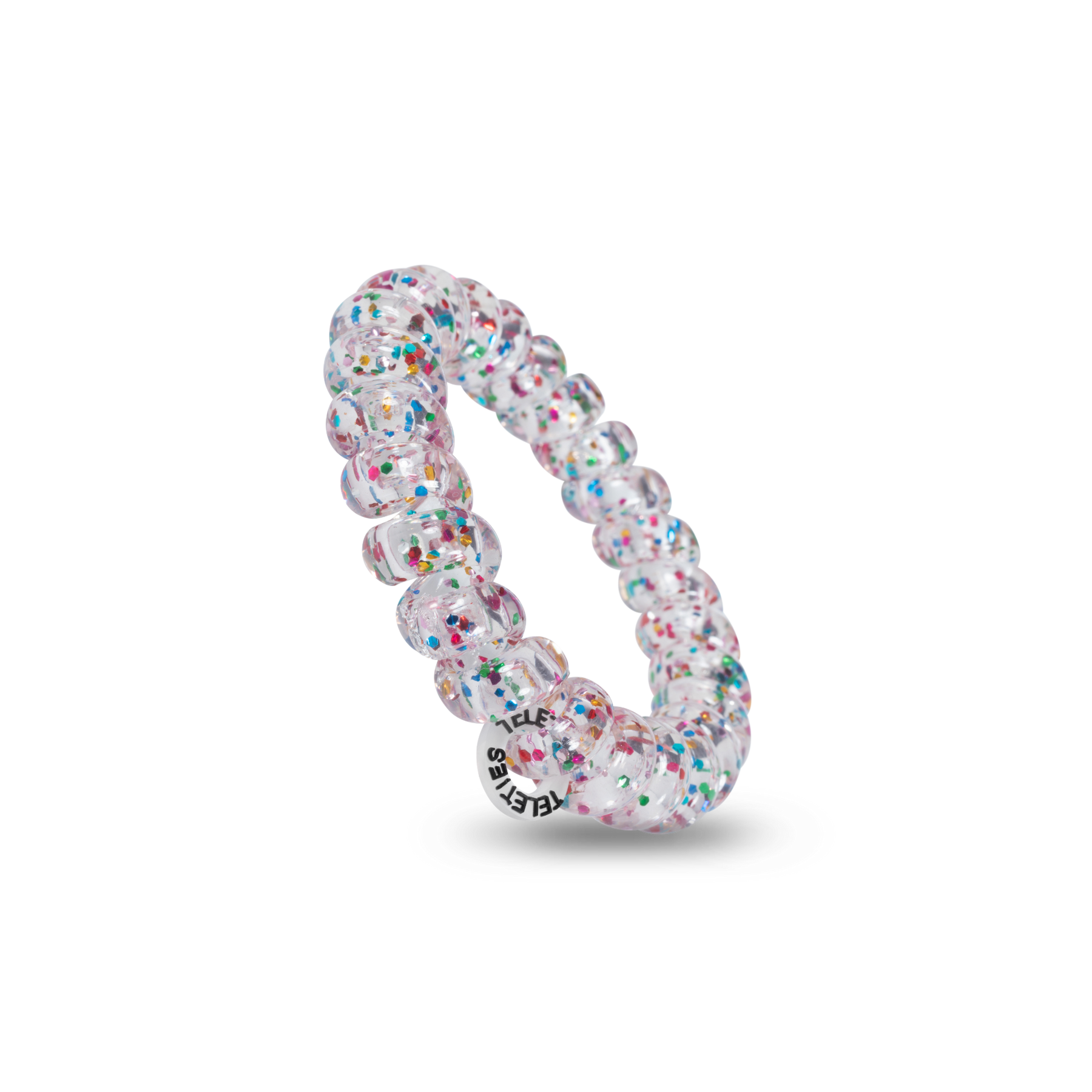 Hold your hair and enhance your style with TELETIES. The strong grip, no rip hair tie that doubles as a bracelet. Strong, pretty and stylish, TELETIES are designed to withstand everyday demands while taking your look to the next level. Sold in packs of three. The large size is 6.5cm wide x 1cm thick.