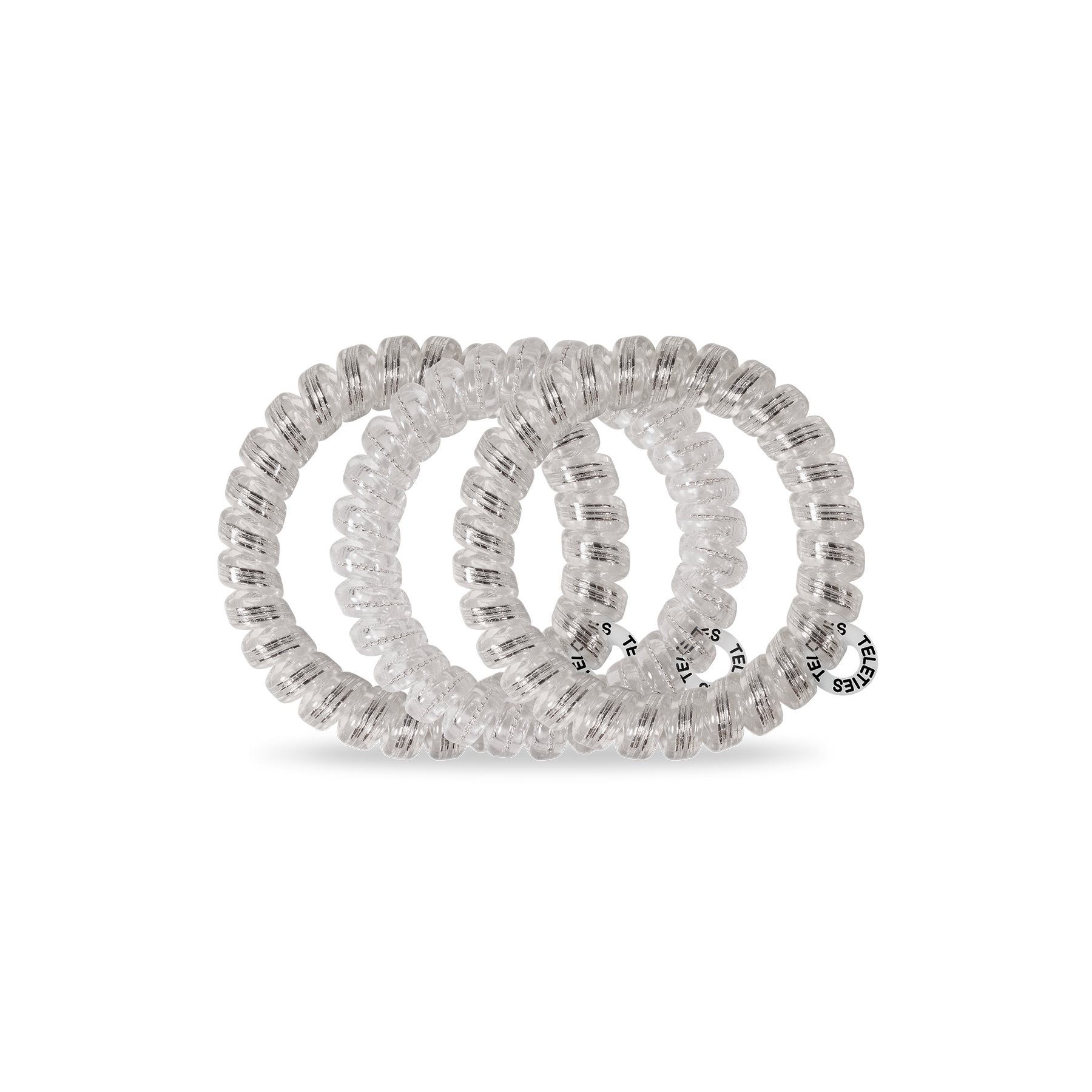 The TELETIES Back to Basics Collection is here! We’re bringing you timeless essentials with our classic collection of hair ties in gold, silver, and versatile neutral tones. Designed for a strong, all-day hold without ripping or tugging, these hair ties are as gentle as they are durable. Whether on your wrist or in your hair, they’re the perfect everyday accessory! Sold in packs of three. The large size is 6.5cm wide x 1cm thick.