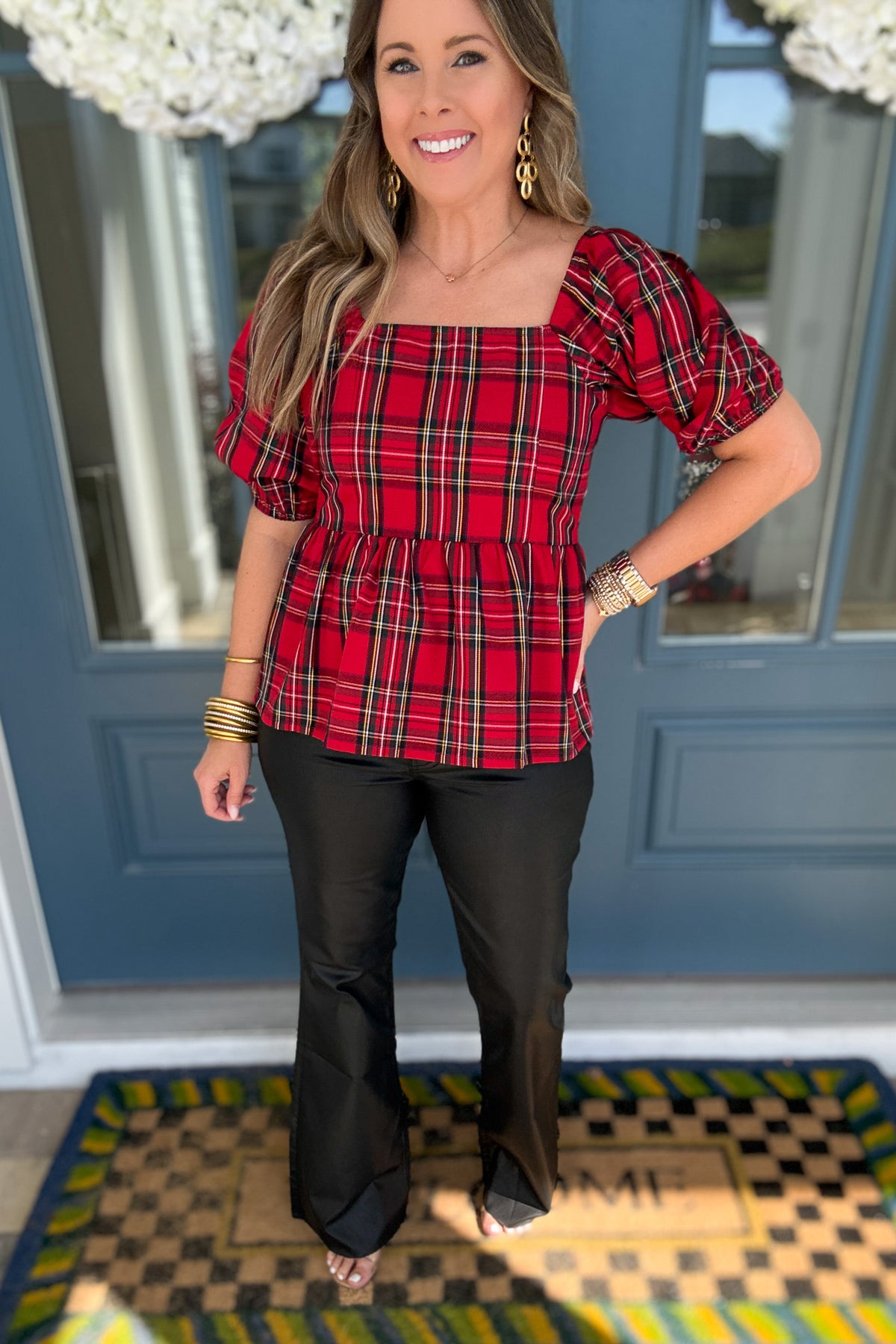 Add a touch of holiday sparkle with the Isabel Top. Crafted in classic plaid woven with metallic accent thread, it features a flattering square neckline and a smocked back panel for a perfect fit. Short puff sleeves with elastic cuffs add feminine charm, while the easy slip-on style makes it an effortless choice for festive celebrations.