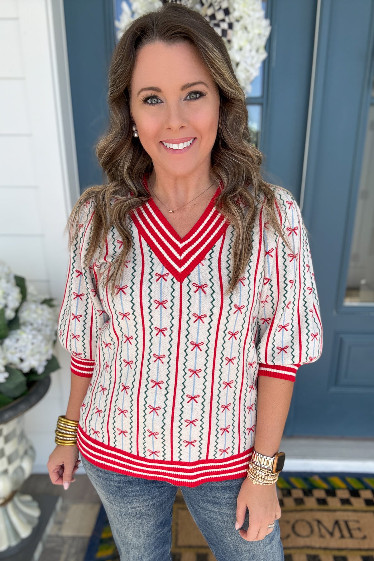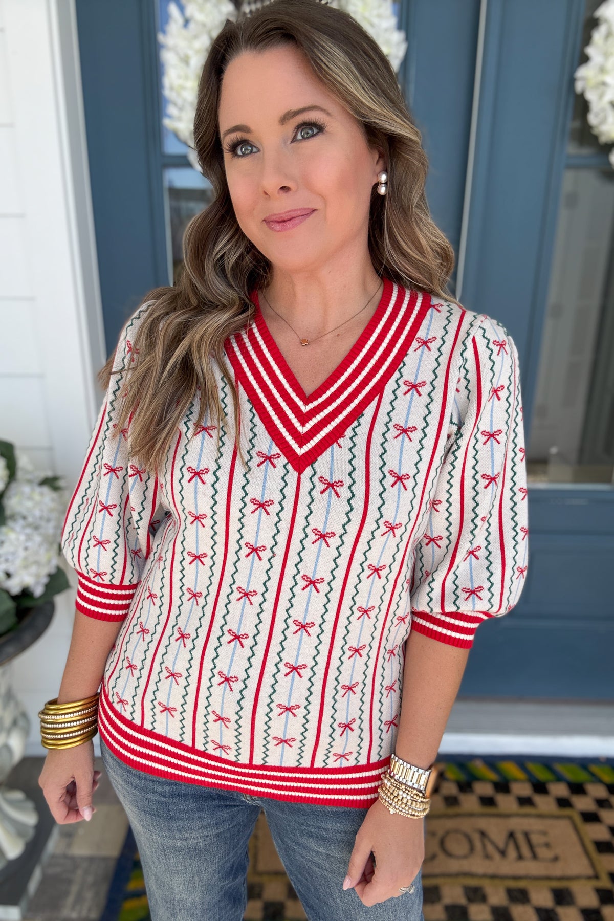 A cozy holiday favorite with a feminine touch. The Faith Sweater features a flattering V-neckline, subtle ribbed trim details, and soft puff sleeves that add just the right amount of charm. Effortlessly versatile and perfect for pairing with your favorite jeans or skirt, this is the sweater you’ll reach for all season long.