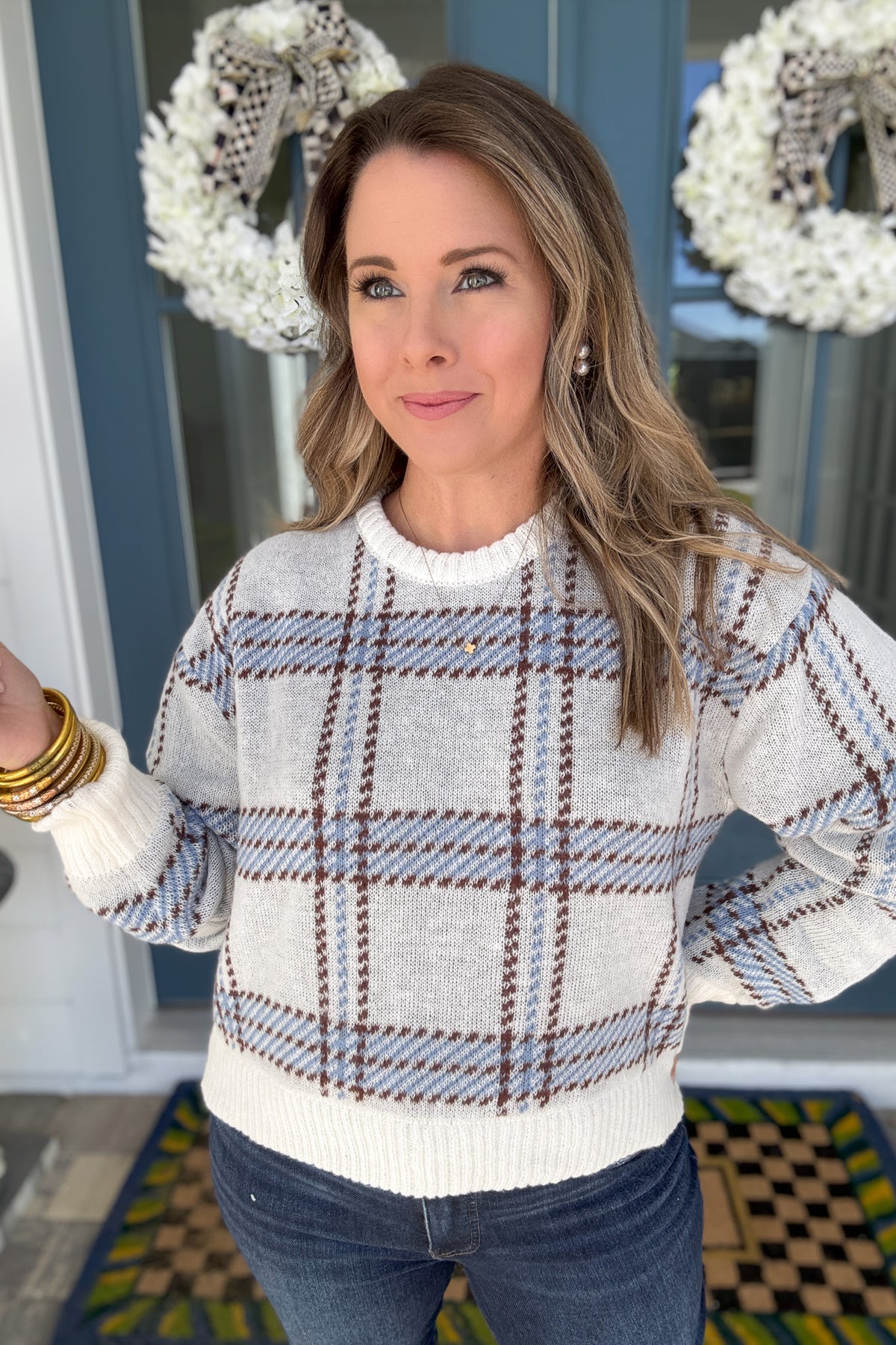 A fresh take on plaid. This isn’t your average check sweater; it’s crafted in airy, textured yarns that feel plush yet breathable. The relaxed shape and elevated pattern make it the one piece that instantly pulls your look together.