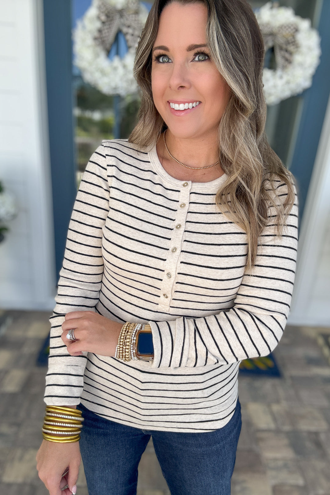 Z Supply: Eve Stripe Henley - Light Oatmeal Heather