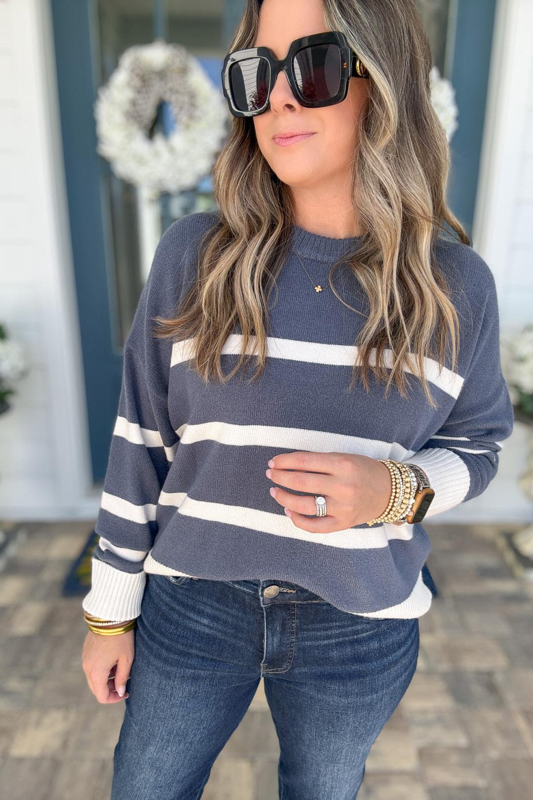 Z Supply: Jordane Striped Sweater - Storm Cloud Heather