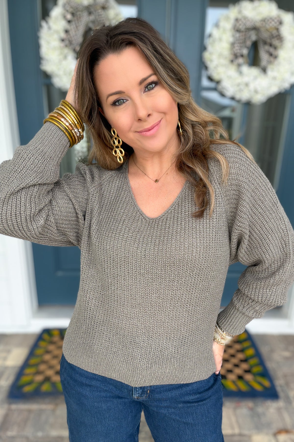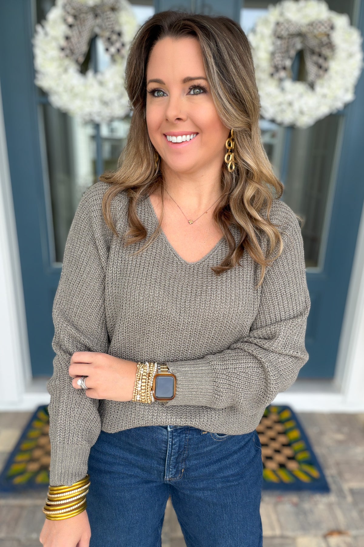 The kind of sweater you’ll reach for on repeat. Our Everyday Luxe V-Neck Sweater is soft, flattering, and effortlessly chic with a relaxed fit that works for everyday errands or casual dinners. A true closet staple that layers beautifully or stands strong on its own.