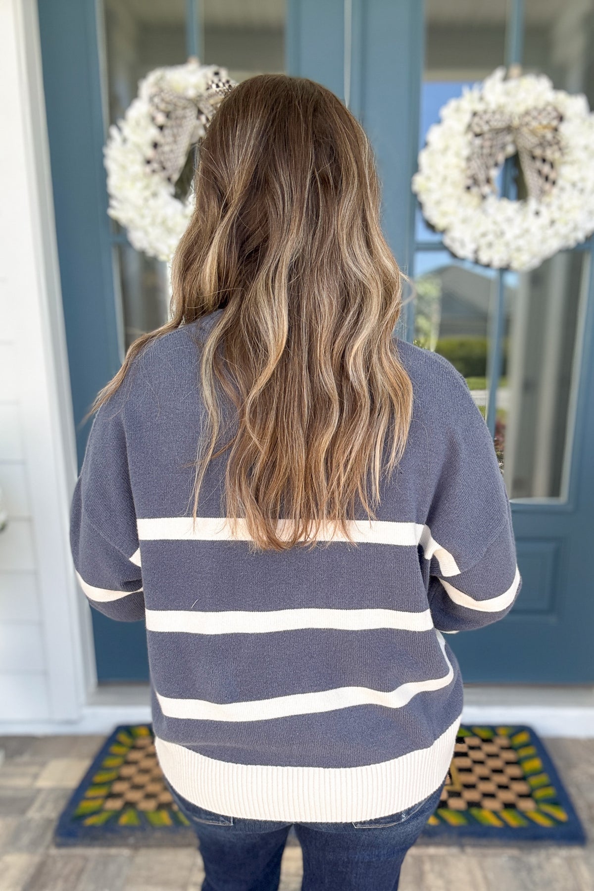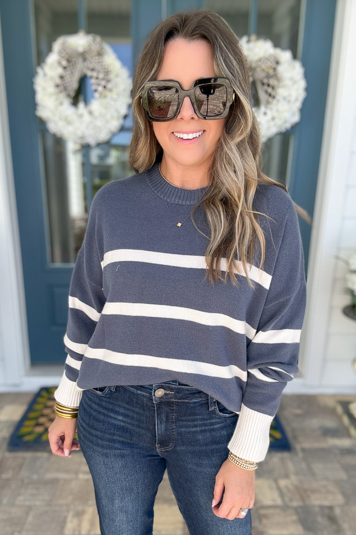 Embrace the stormy vibes with the Jordane Striped Sweater in Storm Cloud Heather! This fun and cozy sweater boasts bold stripes that add a pop of personality to any look. Keep comfy and chic all season long with this lively favorite—guaranteed to attract compliments and a boost of confidence!