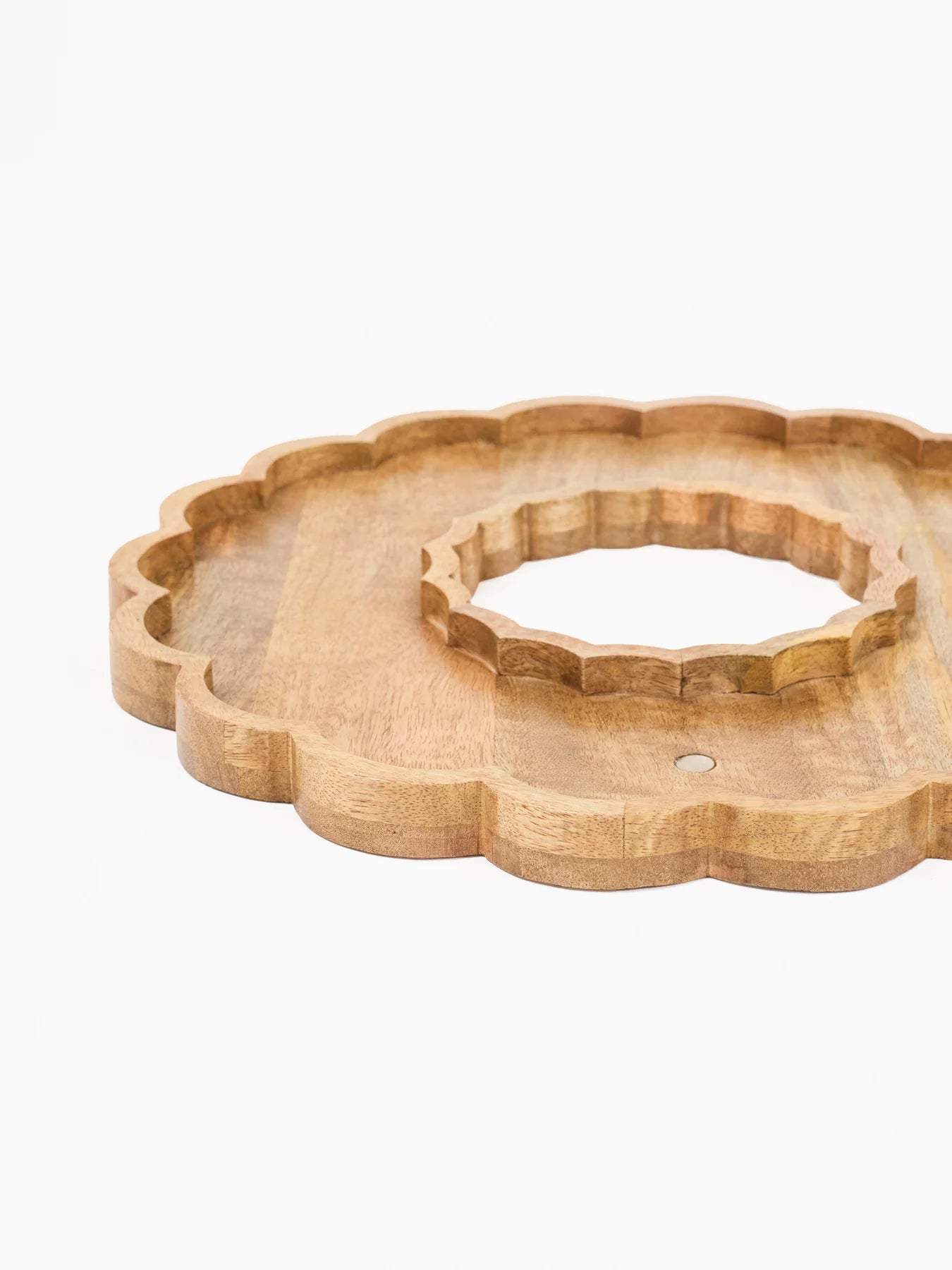 Celebrate the season with this wood board shaped like a wreath. It’s reversible, giving you two useful surfaces for serving or prepping. An inlaid magnet lets you easily attach and remove our festive bows on either side, so you can customize your holiday display with ease.