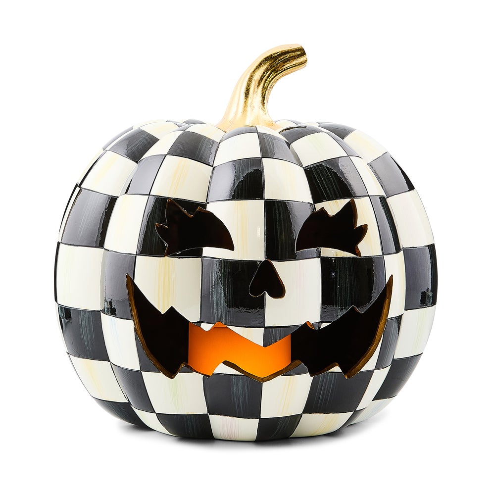 Bring the playful spirit of spooky season to life with the Courtly Check Illuminated Jack O' Lantern. This classic pumpkin lights up from within, with our signature Courtly Checks adding playful pop of pattern.