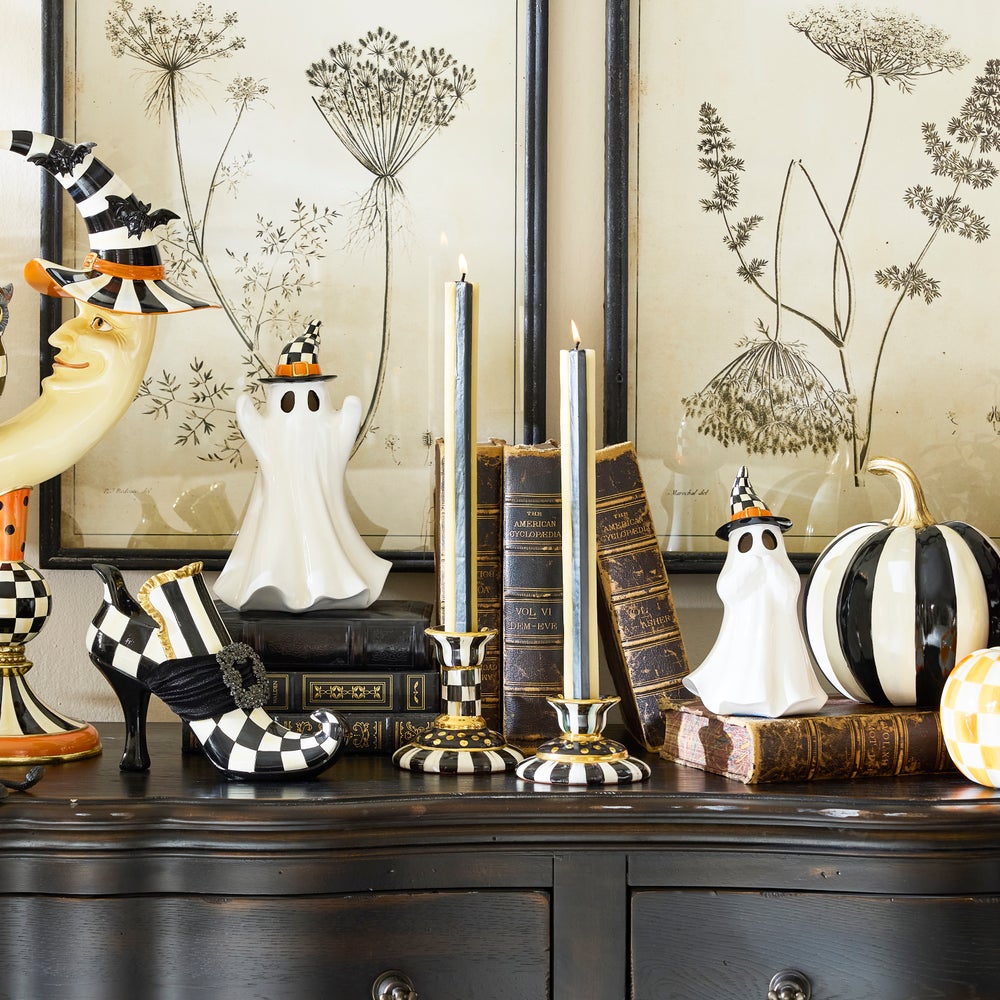 Bring the playful spirit of spooky season to life with the Courtly Illuminated Ghosts. These friendly ghosts glow with a soft light, each adorned with a signature Courtly Check patterned witch's hat. Perfect for adding a delightfully spooky vibe to your Halloween decor.
