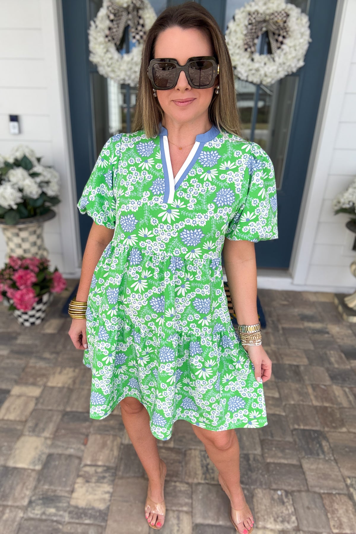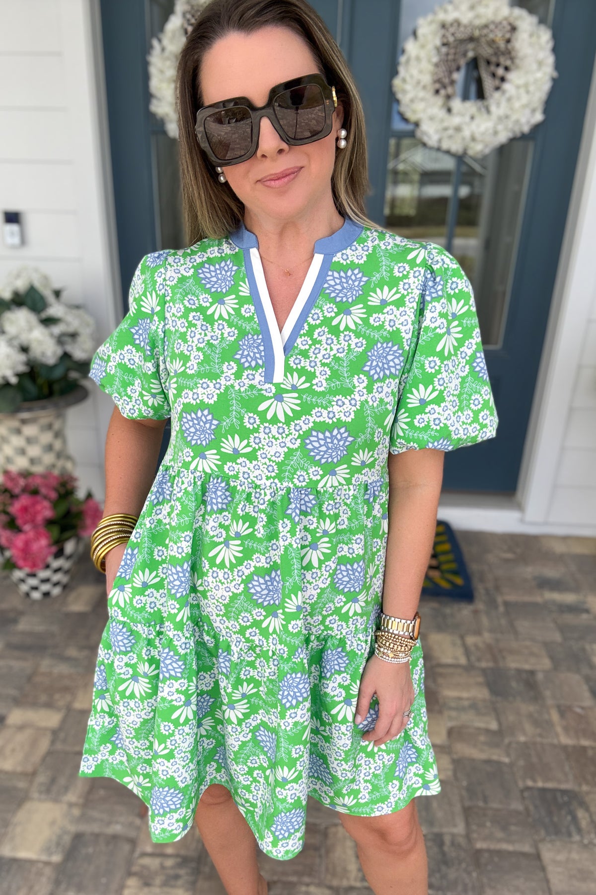 Effortless charm meets everyday comfort in the Kinsley Dress. Featuring playful puff sleeves with elastic finishes, a flattering V-neckline, and convenient pockets, this dress is perfect for anything from brunch dates to weekend adventures.