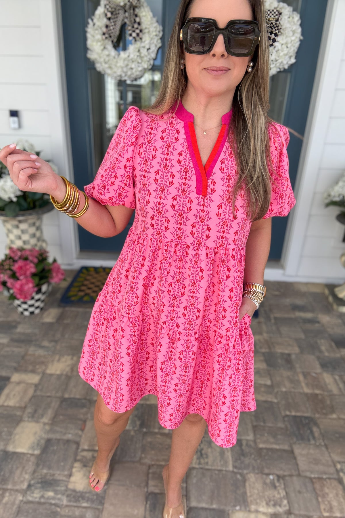 Effortless charm meets everyday comfort in the Kinsley Dress. Featuring playful puff sleeves with elastic finishes, a flattering V-neckline, and convenient pockets, this dress is perfect for anything from brunch dates to weekend adventures.