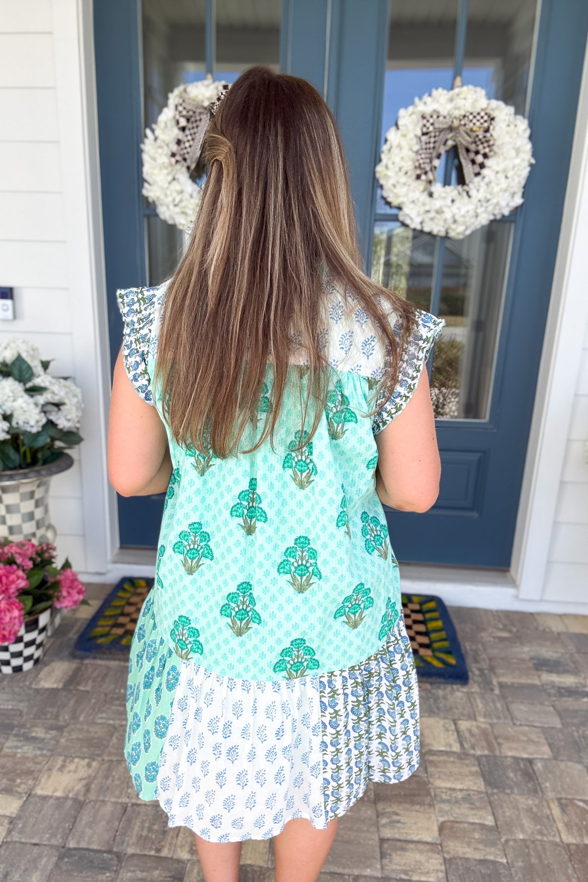 THML: Birdie Garden Patchwork Dress – Mint Multi