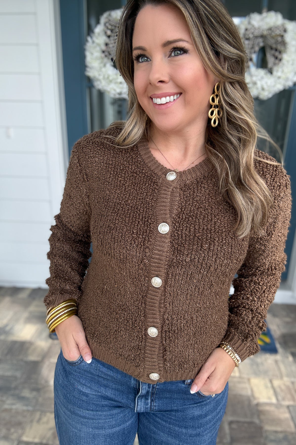 Wrap yourself in cozy charm with the Z Supply Maxie Fluffy Cardigan in Root Beer. This playful piece features an embellished button front that adds instant personality, while dropped shoulders create an effortlessly relaxed silhouette. The novelty knit fabrication delivers cloud-like softness, and ribbed trims keep everything polished and put-together. Perfect for layering over your favorite tee or wearing solo, this cardigan is your new go-to for comfort that doesn't compromise on style.