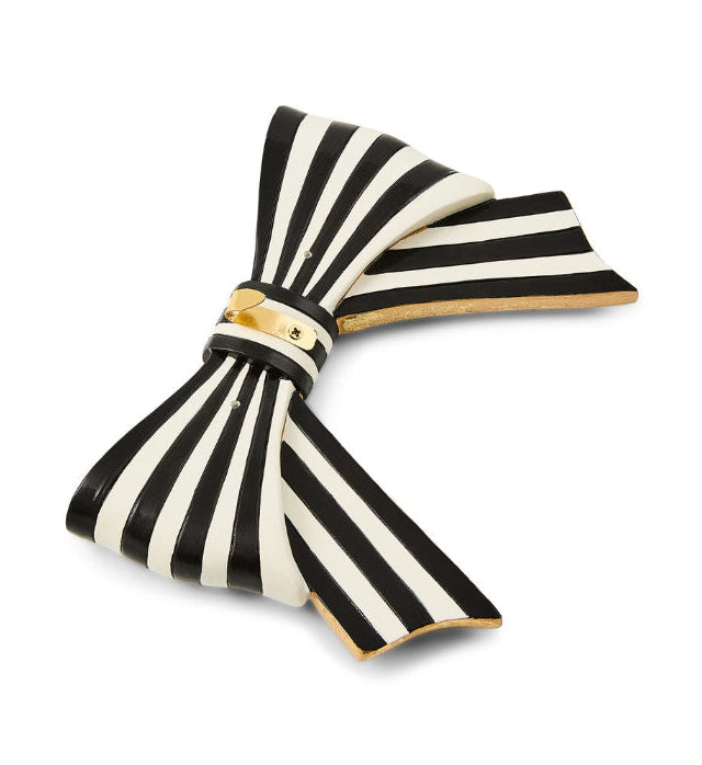 Add whimsy to your garden pots with this Pretty as a Bow Pot Climber, hand-painted with shiny black and white stripes. It attaches to any pot or planter with a small metal hook.