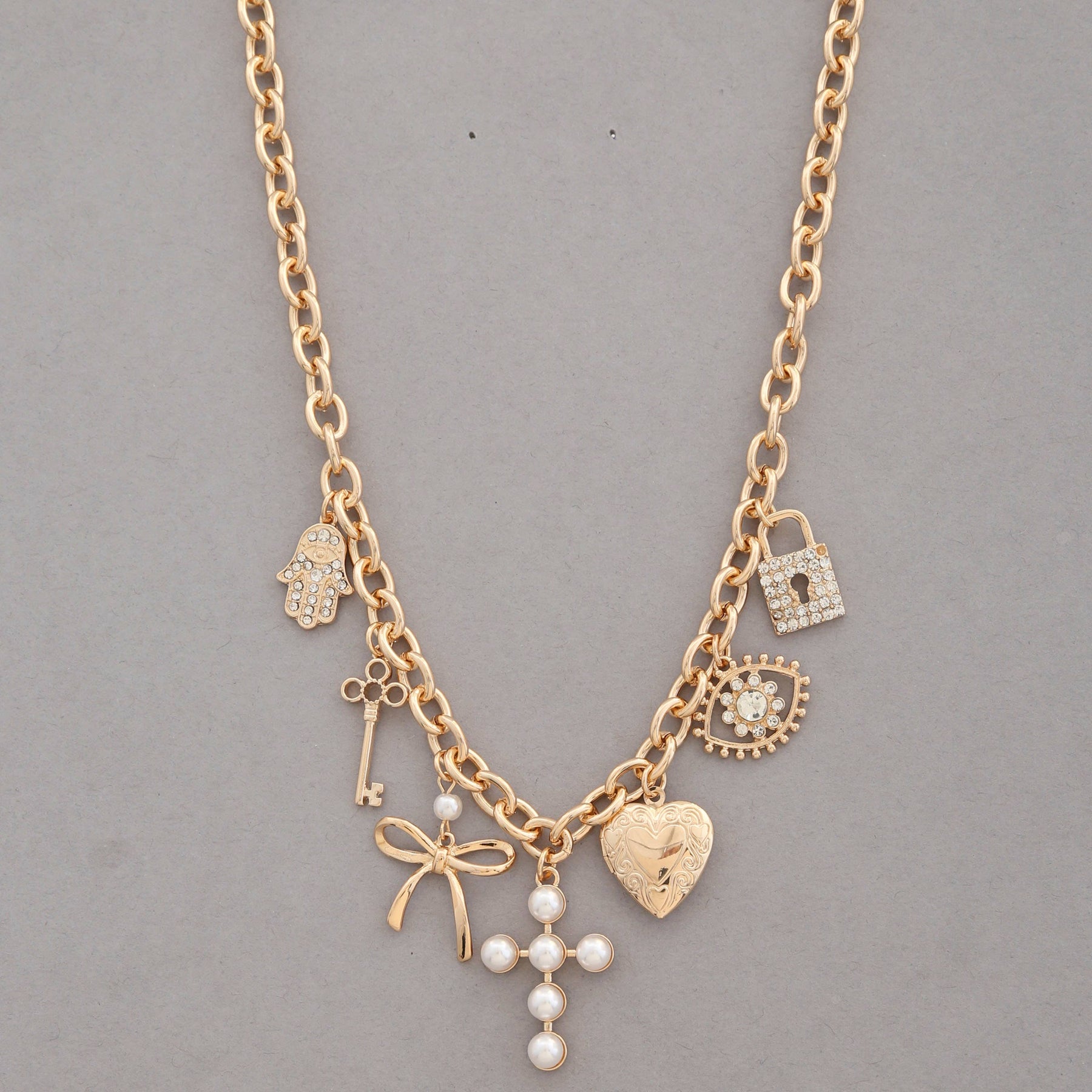 This 18" necklace features a unique charm station design, adding a touch of sophistication to any outfit.