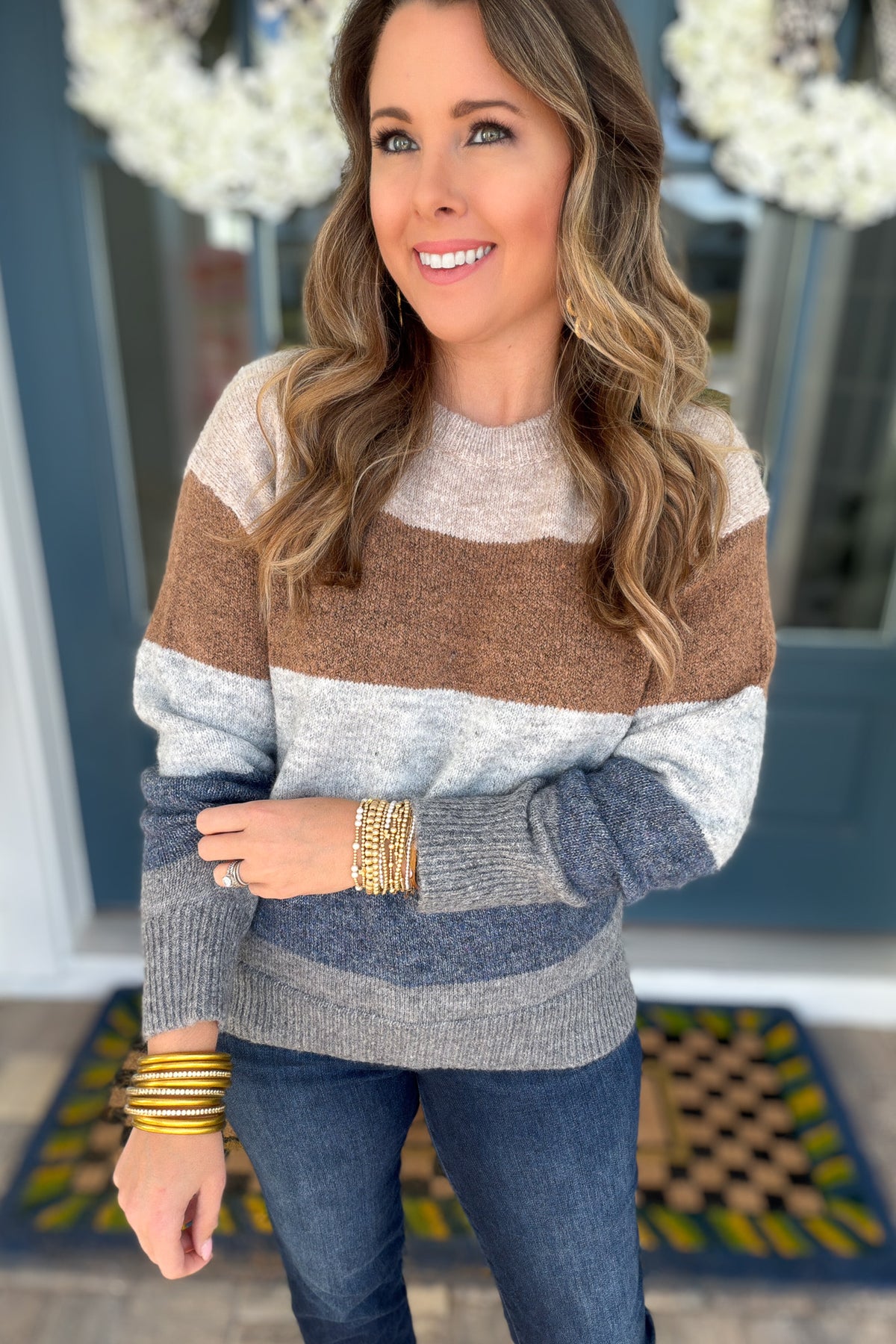 Cozy, classic, and endlessly wearable. The  Layers Colorblock Sweater features warm neutral tones in a timeless stripe design that feels both elevated and easy. Soft to the touch with a relaxed fit, this sweater is made for everyday wear — from school drop-off to dinner plans.